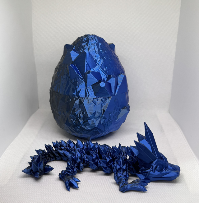 Design : Œuf de cristal finement travaillé, renfermant un dragon cristal détaillé et scintillant.